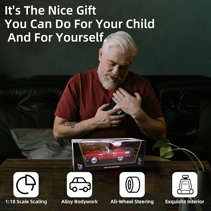 - Officially Licensed Premium Replica This authentic 1:18 scale die-cast model is officially licensed by Ford, meticulously recreating the iconic 1955 Thunderbird with working doors, detailed interior, and signature chrome accents. Perfect for collectors and Ford enthusiasts.
