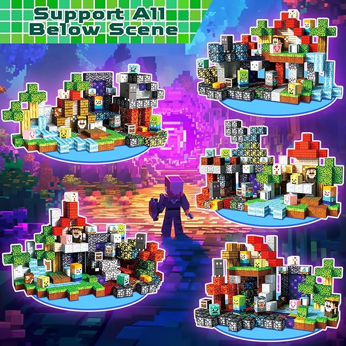 - 【Imaginaions & Creativity Builder】Let's embark on an adventure with magnetic building blocks! Spark the imagination of children with themes of lava, portal and forest. These magnet blocks encourage open-ended play, allowing kids to construct, demolish, and rebuild as they please. Safe, durable, and designed for little hands, our magnetic cubes make learning fun, enhancing focus, patience, and motor skills—ideal toys for kids 3+ years old.