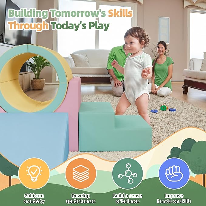 - HIGH-DENSITY FOAM CLIMBING BLOCKS - Our kids' indoor climbers & play structures are made of the friendly foam filler full covered by soft & smell-free polyurethane material. Enjoy your wonderful parent-child time.