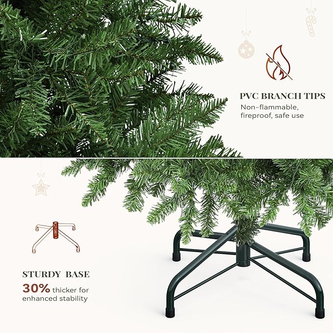 - Fireproof Materials & Stable Base: Crafted with fireproof PVC branches tips to eliminate safety risks, while the sturdy metal base and reinforced bracket provide rock-solid stability, keeping your tree safe and secure throughout the season.