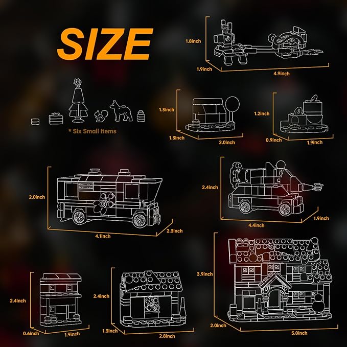 - 【Classical Christmas Holiday Set】This Advent Calendar set, inspired by a Christmas blockbuster film, perfectly recreates the main house, garage, neighbor’s house, glowing bulb heap, dumpster, and reindeer-drawn sleigh, also two mini vehicles—Christmas tree-laden car and cousin’s RV—making us immersing in the movie’s magic, blending holiday cheer with nostalgic wonder