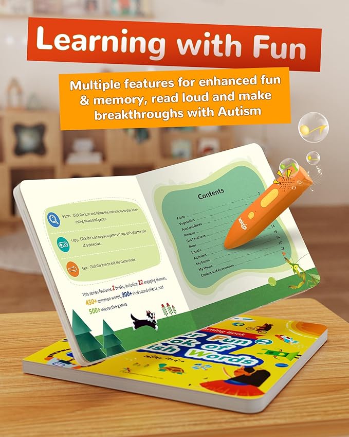 KOKODI Talking Pen Books Sets, Interactive Audio Sound Books Kids Learning Electronic Toys for Toddlers Kids, Autism Sensory Games, Early Educational Gifts Birthday Gifts for Boys Girls Age 2 3 4 5