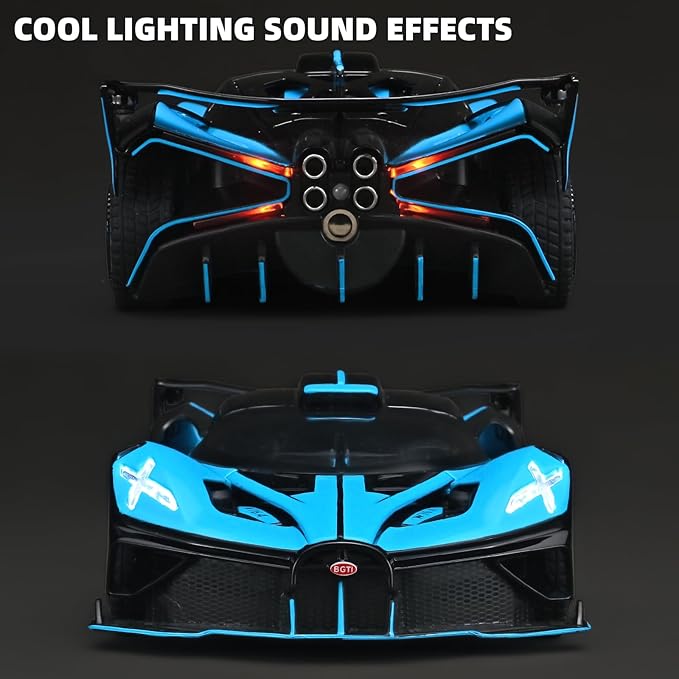 Toddler Car Toys 1/24 Diecast Cars Compatible for Bolide Model Car Collection,Spray Bolide Toy Car for Boys,Pull Back Cars with Light and Sound,Toy Cars for Boys Age 4-7(Blue)