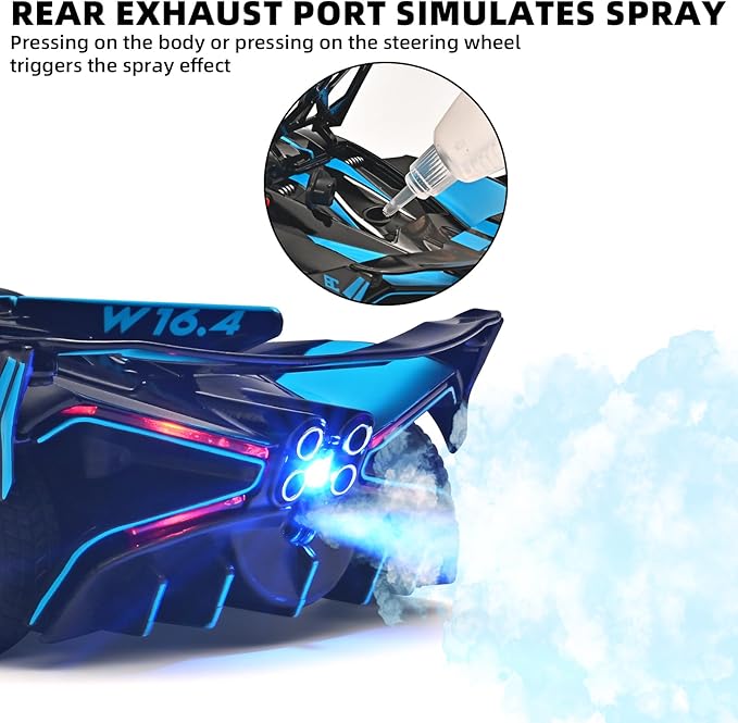 - 【Multifunctional Toddler Toy Cars】The doors, front hood and rear hood of diecast toy cars can be opened. After filling water into the water filler under the rear hood, press the front wheel to trigger the spray function and sound and light effects.The tail spray effect is as cool as a rocket booster.The race car toy rear wheels have a pull back function.The front wheels can turn left and right, press the horn to trigger sound and light effects,shock absorbers on all four wheels.