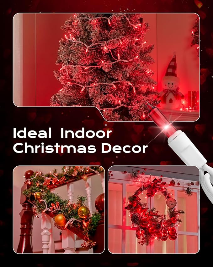 - 【Festive Mini Christmas Lights Set】This set includes 100 red incandescent mini-lights on 26.5 ft white wire, with bulbs spaced 3-inche apart and 18-inch lead wire. Perfect for holiday decorating, with the ability to connect up to 5 light strings end-to-end;