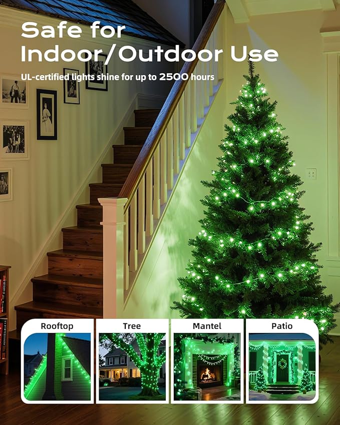 - 【Versatile Indoor and Outdoor Use】Coated with white wire, these 100-count green St. Patrick's Day green tree lights are suitable for both indoor and outdoor displays. Perfect for adding a festive touch to patios, bedrooms, and seasonal decorations;