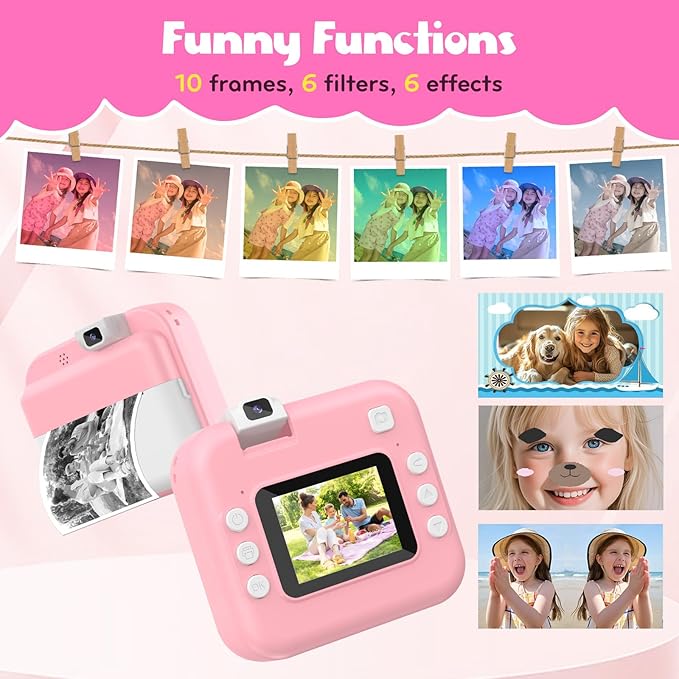 - Perfect Gift for Every Occasion: Whether for a birthday, Christmas, family gathering, or outdoor adventure, this kids instant digital camera is a surprise choice for kids ages 4-10. It's a thoughtful gift for sons, daughters, nephews, nieces, grandchildren, or little friends. Let your child explore the world through their lens, capturing magical moments while saying goodbye to screen time