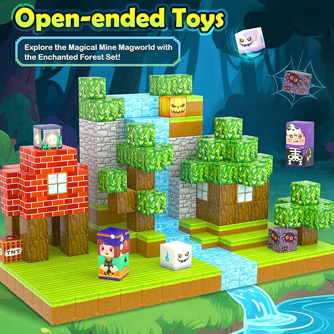 - 【ENCHANTING FOREST MINE MAGNET WORLD】Step into a magical magworld with 150PCS Toylogy magnetic blocks, perfect toddlers boy toys age 3 4 and building toys for kids ages 4-8! Kids can build a woodland cabin, hunt for ghost-guarded treasures, or create cozy campfires with glowing pumpkin lanterns. With playful forest characters, these magnetic tiles for kids inspire endless creativity. From simple to challenging construction. Let kids' imaginations run wild with our magnetic open-ended playset.