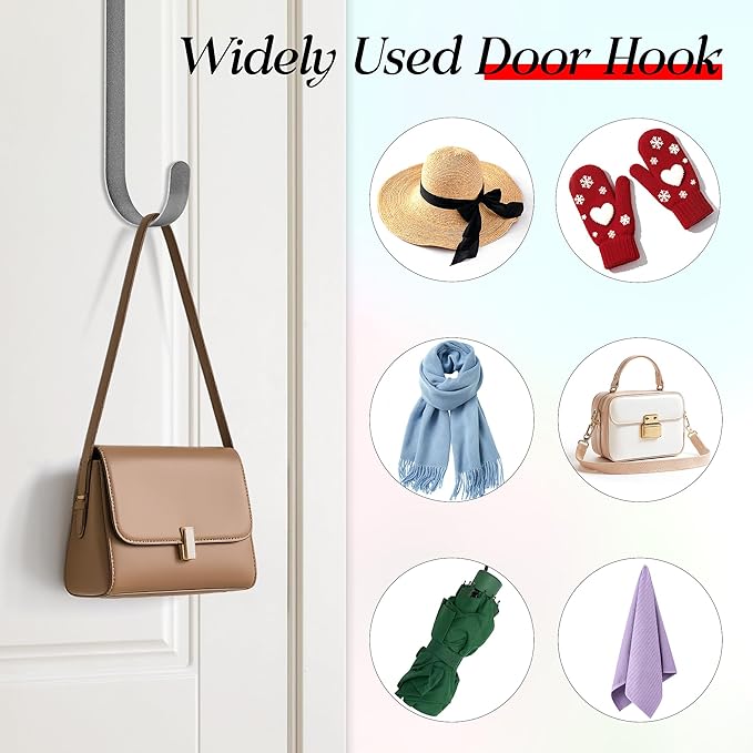 - Wreath Hangers for Front Door:The Wreath Door Hanger is perfect front door decor.Ideal the over the door hooks wreath decorations accessories for hanging Halloween,Christmas,Thanksgiving decorations.And wreath door hooks fit various styles of doors,such as wood,metal and glass doors.Use this wreath door holders to help you create door decorations full of festive atmosphere