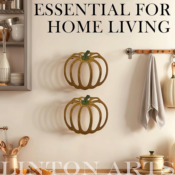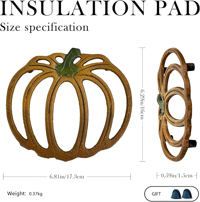 - 【PREMIUM QUALITY & DURABLE CONSTRUCTION】Crafted from high-grade cast iron with an authentic rustic finish, this vintage-style pumpkin trivet boasts exceptional sturdiness for years of reliable use. Its rugged construction resists breakage and rust, while the integrated rubber feet provide secure cushioning to prevent sliding and protect your countertops from scratches.