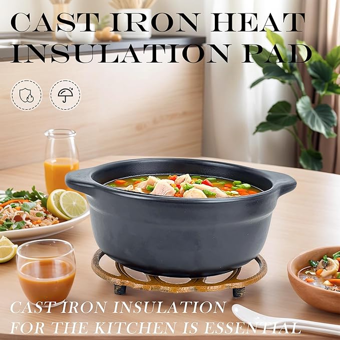 - 【FREE HEAT RESISTENT SILICON GLOVES & RUBBER PEG】The Cast Iron Trivet comes with complimentary heat resistant silicone GLOVES for safe handling. The integrated rubber pegs provide enhanced anti-slip protection, effectively safeguarding your tabletops and countertops from both heat damage and surface scratches.