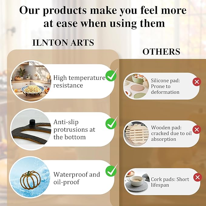 - 【FUNCTIONAL and VINTAGE PATTERN】Hollowed-out design ensures both heat dissipation and elegance. Pumpkin themed heat protector, which is perfect to match with various home decor, and also go well with kitchenware and suitable for placing on the table top or wall as kitchen fall decor.