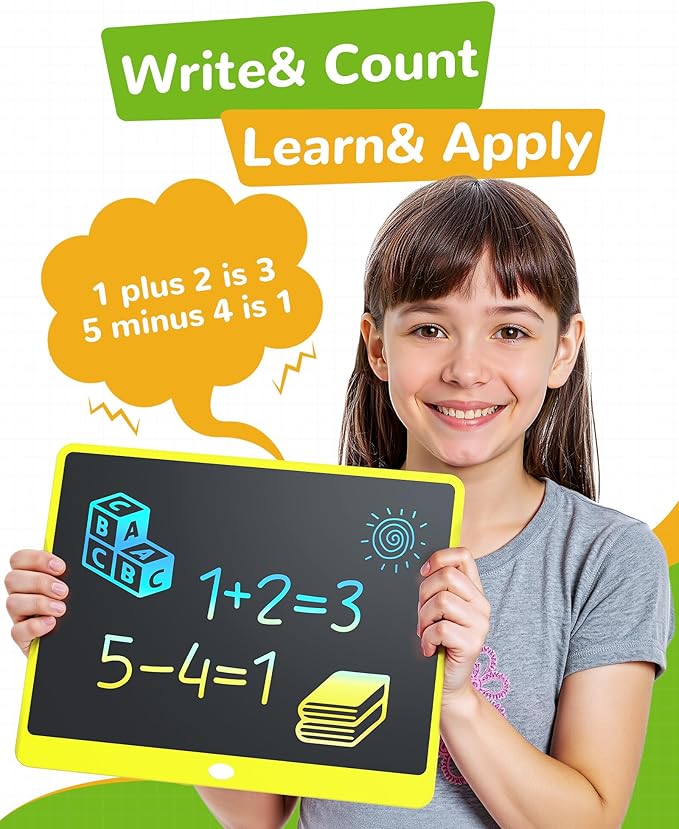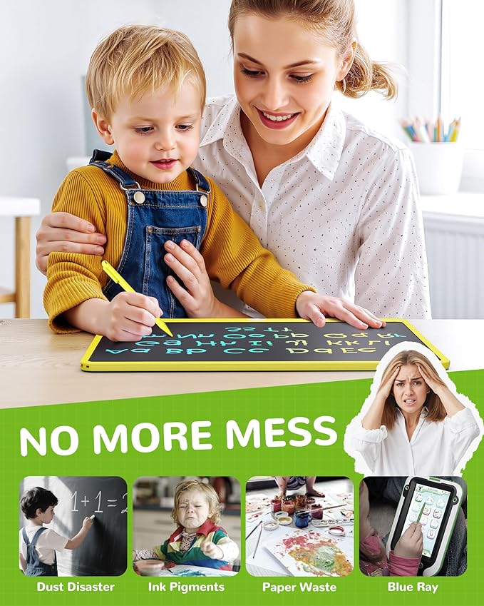 - EYE PROTECTION LCD WRITING TABLET: Adopts 2022 LCD pressure-sensitive technology and 16-inch LCD colorful screen. This doodle board toys without radiation, no glare, safe and comfortable even use for a long time.