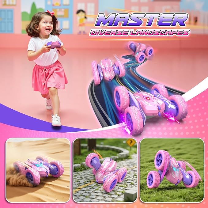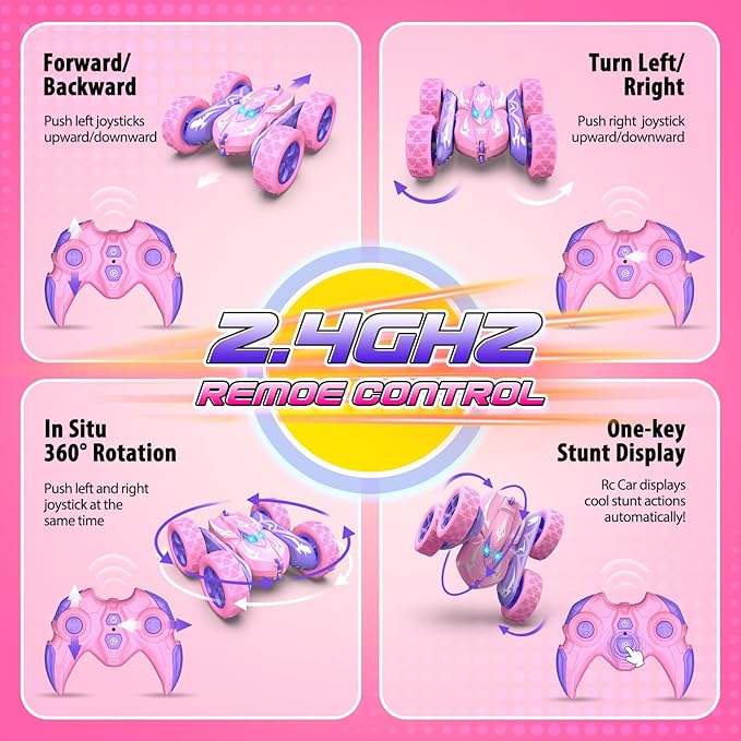 - 360° Stunt RC Cars: Watch your kids' eyes light up as this 4D-driven remote control car pulls off insane stunts! With double motors hitting a wild 15 km/h, it spins 360°, drives 90° upright. Easy-to-use controls mean endless hours of heart-pounding fun.