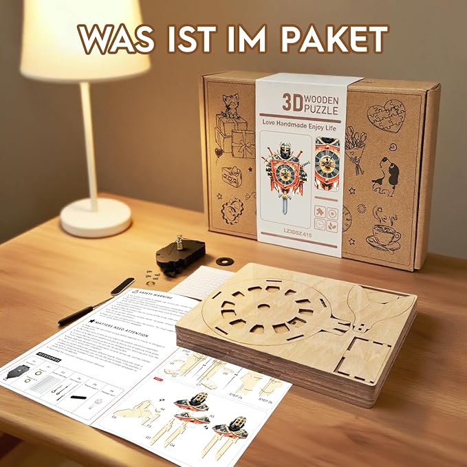 - 【3D Puzzles for Adults】Build a stunning mechanical clock with this intricately designed DIY clock kit, featuring a three-dimensional knight motif and roman numeral dial. Perfect for hobbyists seeking challenging 3D puzzles that combine artistry with engineering.
