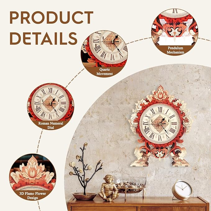 3D Puzzles for Adults Clock-Flame Flower Design Model Kit-Mechanical DIY Pendulum Clock with Roman Numerals-Desk Home Office Decor Personalized Gift for DIY Lovers