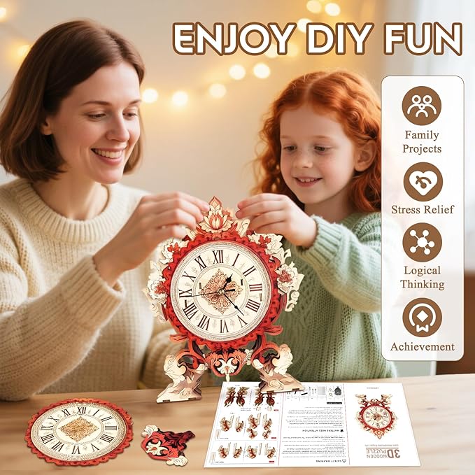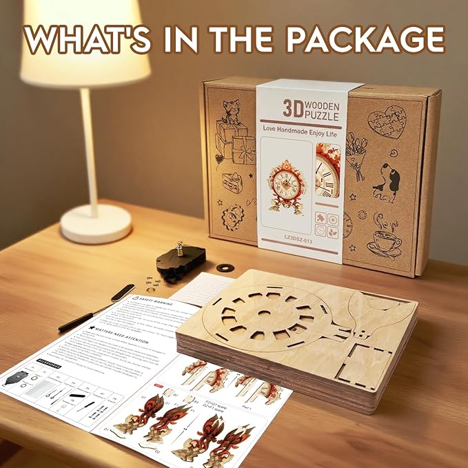 - 【Personalized Gift for DIY Enthusiasts】Surprise loved ones with a thoughtful puzzle gift. Perfect for birthdays, holidays, Easter or housewarming events, this 3D wooden clock kit appeals to fans of mechanical models, home office decor, and brain-teasing puzzles.