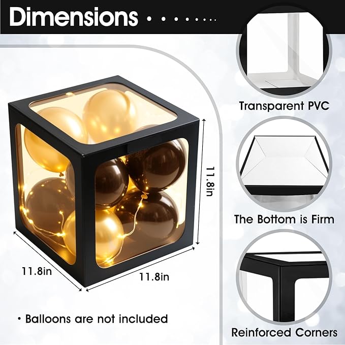 - Package Included: You will receive 4 black balloon boxes(11.8”×11.8”×11.8”), 2 “ BABY ”letter sets, 4 fairy light strings, 38 balloons(White/Black/Gold/Gold Conefetti)and adhesive dots. Stylish and practical, these items are perfect for a variety of occasions like baby shower, gender reveal, birthday party and more. The baby box will add a charming touch to your celebration while creating the perfect decorative backdrop for capturing memorable photos.