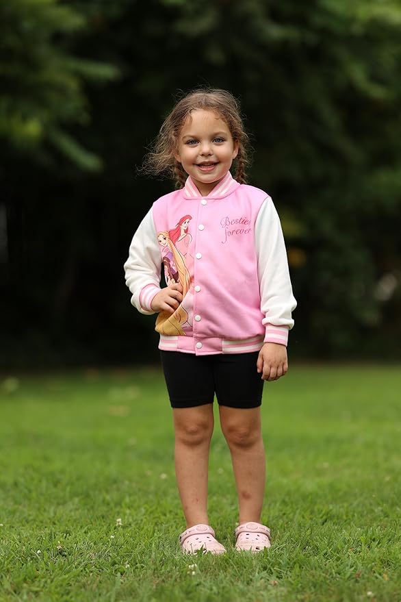 • Charming & Friendship-Focused Design: Let your little one feel like a princess with this Disney Princesses Forever varsity jacket! Featuring Ariel, Belle, Rapunzel, and more, this pink jacket celebrates friendship with the “Besties Forever” message. Ideal for kids aged 2-6, it’s perfect for school, outings, or play, offering both style and comfort for every young Disney fan