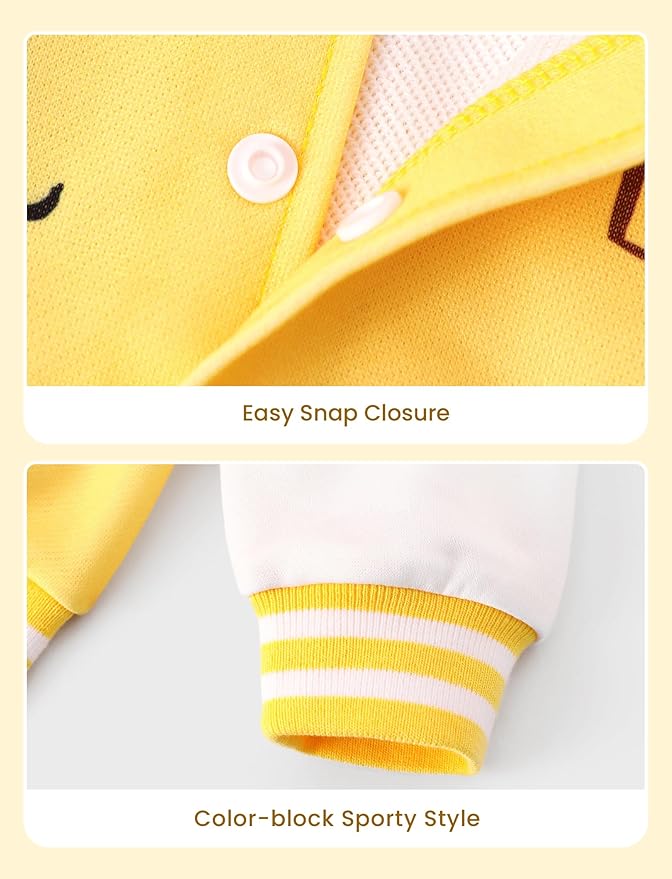 • Charming & Elegant Design: Let your little one shine with this Disney Belle varsity jacket! Featuring Belle in her iconic yellow gown, this bright yellow jacket with white sleeves and “Belle” lettering is stylish and fun. Perfect for kids aged 2-6, it’s ideal for outdoor play, school, or outings, bringing the timeless beauty of Beauty and the Beast to life