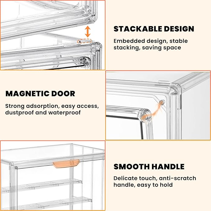 - 【Stackable Design to Save Space】Each acrylic display case measures 14.2"L x 8.7"W x 10.6"H, allowing for easy stacking without shaking or tipping, maximizing your limited space. This stackable design transforms vertical space into a collection wall, eliminating clutter. You can also stack figure display cases side by side for even wider display space