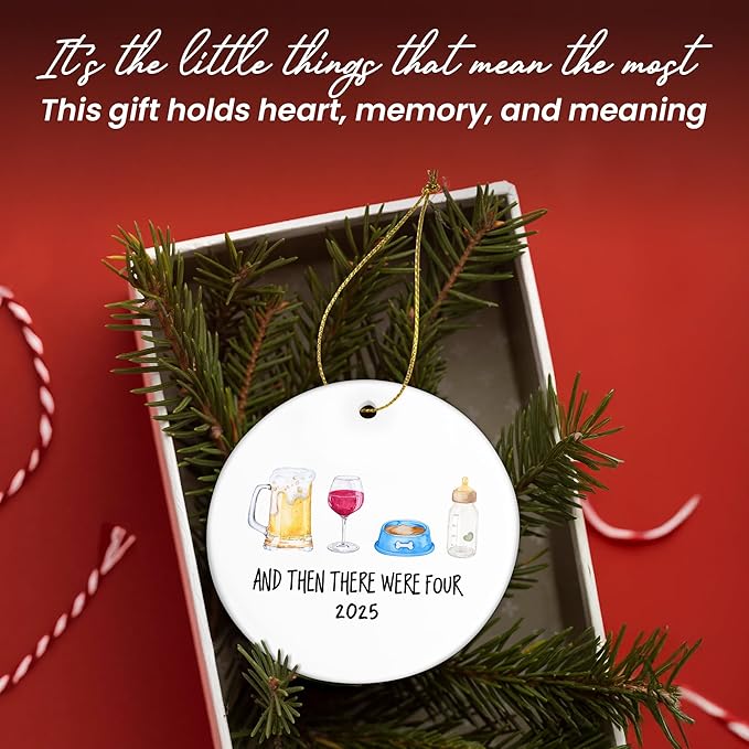 - BABY ANNOUNCEMENT ORNAMENT – Share exciting news with this meaningful coming soon baby announcement that also doubles as a new baby gift idea. Ideal as great grandparents baby announcement, pregnancy announcement for husband, or pregnancy announcement for aunt and uncle, it joyfully says, "And then there were four!" and marks a milestone year as perfect stocking stuffers.