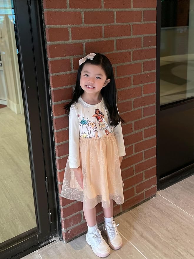 - Charming & Tropical Design: Let your little one embark on a Moana-inspired adventure with this enchanting dress! Featuring Moana surrounded by vibrant tropical flowers and palm trees, this soft blue dress captures the island magic. The long sleeves and flowy tulle skirt add a playful, comfortable touch. Perfect for kids aged 2-6, this dress is ideal for playdates, school, or family outings, offering both style and comfort with a delightful Disney twist.