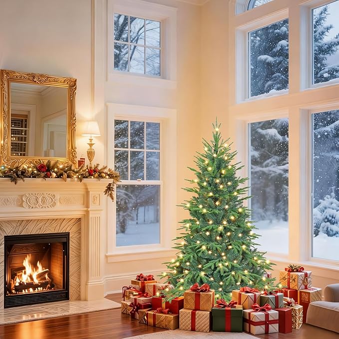 - Easy installation and storage: This artifical christmas tree uses metal hinges to connect the branches, and the internal support of the branches is a mixture of memory steel wire and iron wire, gently shaping the tree tip to quickly unfold the branches and leaves, making it easier to hang christmas tree decorations for a full and natural appearance. The foldable design and detachable components facilitate compact storage.