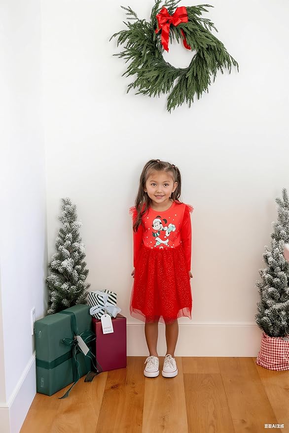 - Charming & Unique Design: This girls' Christmas dress features ruffled sleeves, a tulle skirt with sparkles, and Minnie Mouse in a joyful holiday pose. The vibrant red color and fluttering tulle skirt make it the perfect choice for Christmas parties, photoshoots, or dress-up occasions. Your toddler will look stylish and cute for any festive event.
