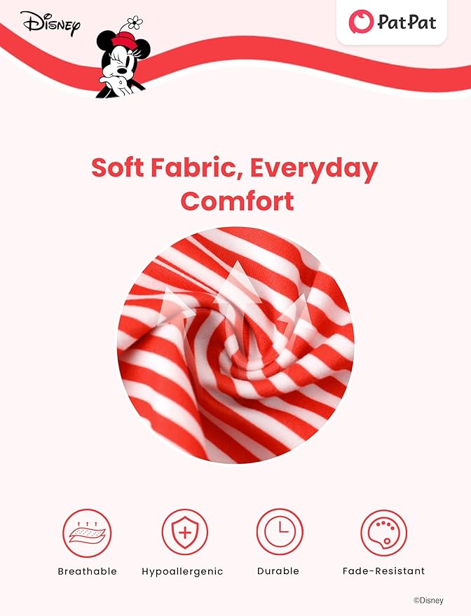 - Charming & Unique Design: The dress features ruffled sleeves, a sparkling tulle skirt, and a joyful Minnie Mouse graphic in a classic Christmas pose. The vibrant orange-red color, enhanced with cheerful red polka dots, while the fluttering tulle skirt adds an element of movement and charm. The dress's shiny accents on the tulle catch the light as your little one twirls, accentuating the silhouette and adding an extra dose of cuteness.