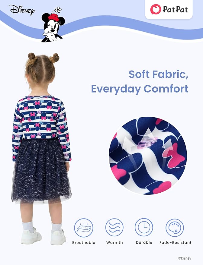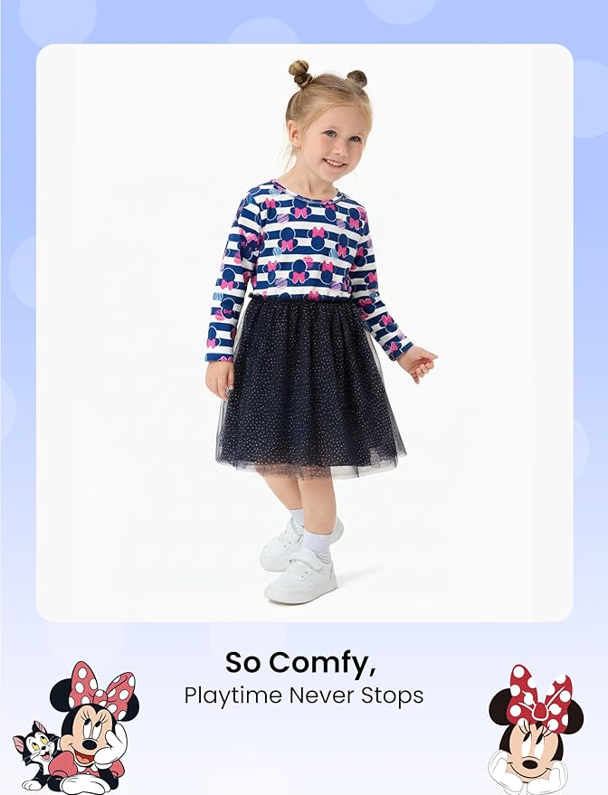 - Disney Officially Licensed: Immerse your child in a fairytale world with our officially licensed Disney Mickey and Friends long sleeve dress for girls. Minnie's charm, confidence, and loving nature inspire children to be kind, self-assured, and full of joy. These Disney toddler girl clothes are perfect for little Disney fans