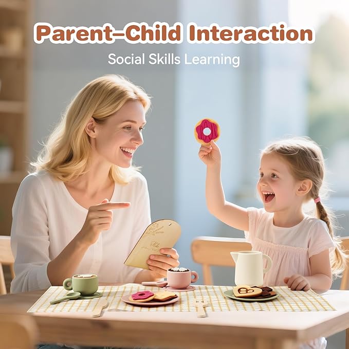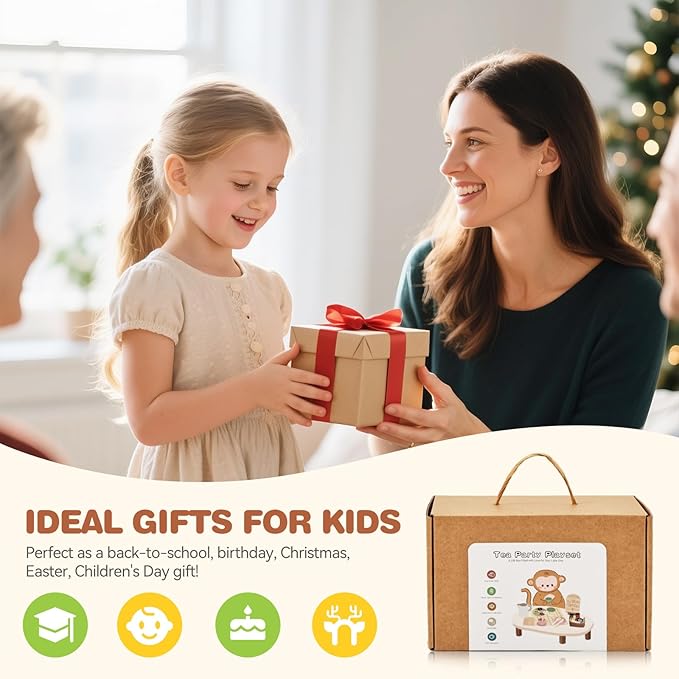 - High-quality materials: This wooden tea set, designed specifically for young children, combines bite-resistant, non-toxic silicone products, skin-friendly natural wooden components, and colorful, high-quality, durable felt accessories. It is ideal for hosting pretend tea parties, as its materials ensure safety and reflect environmental awareness, while also enhancing the tactile play experience.