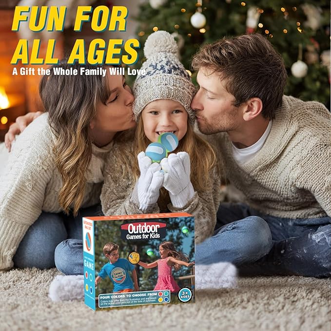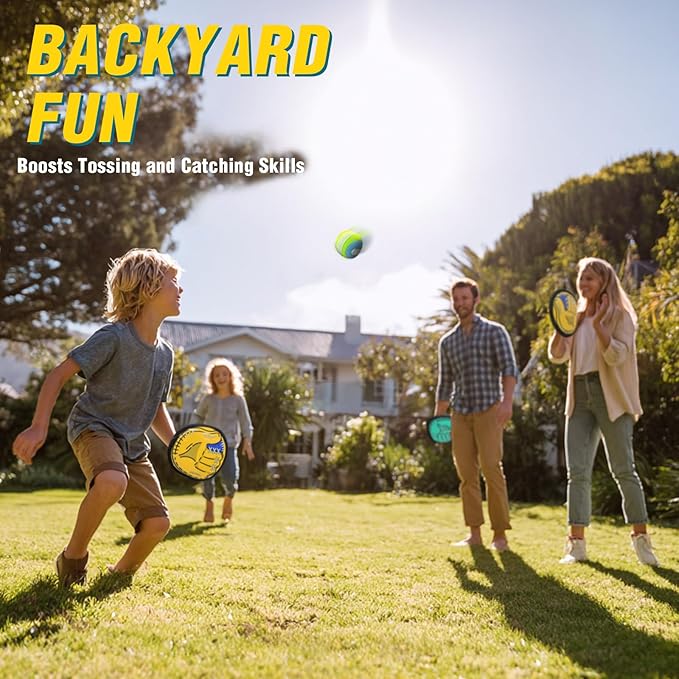 - Great Family Game for All Ages Our toss and catch velcro ball set is the ultimate way to enjoy classic outdoor games with both kids and adults. Each outdoor playset includes 4 paddles, 4 sticky balls, and a convenient storage bag—perfect for backyard fun, beach games, family parties, picnics, camping trips, and more.