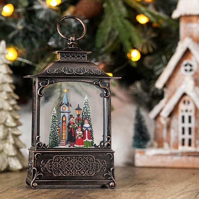 - 2025 Snow Globe: A beautifully crafted snow globe lantern illuminated by warm white LEDs brings a magical winter wonderland to life. Watch as shimmering silver glitter swirls like falling snow around festive figures, creating a captivating sparkling effect.