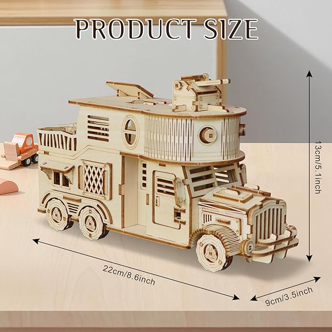- 【New Design】This is a very innovative combat RV model wooden kit that you can build by yourself. It will need you spend about 3-4 hours to assemble this wooden model kit.You can focus on one thing at a time. After finished, it also can be a decoration. It is fun and fulfilling to finish