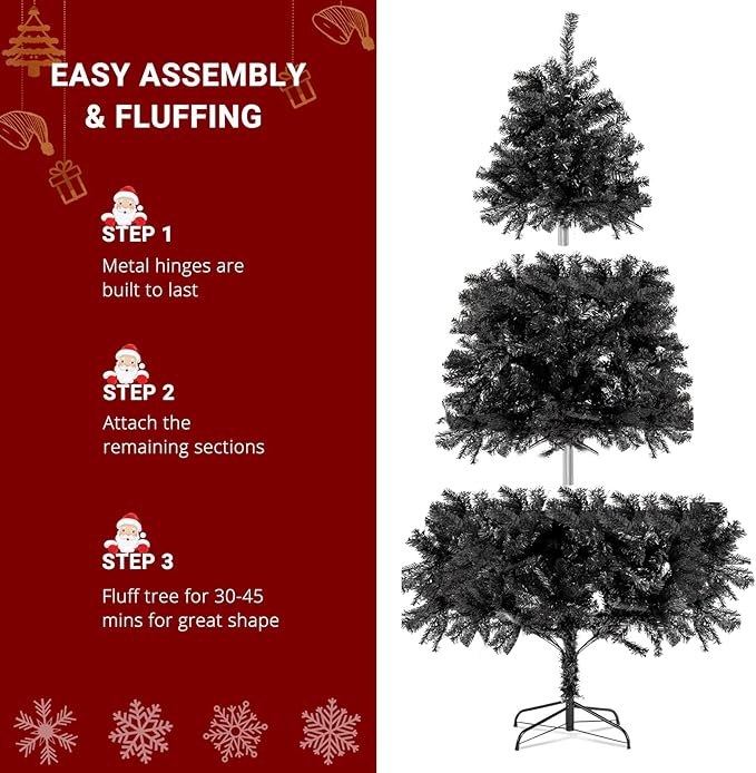 - 【Large Black Christmas Tree】 – Standing at 7ft tall, this artificial Christmas tree is ideal for apartments, offices, or as a charming accent in larger rooms. Its compact yet full design fits beautifully in entryways, living spaces, or as a festive party centerpiece, bringing holiday cheer without taking up too much space.