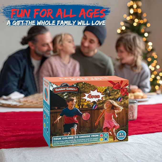 - Great Family Game for All Ages The toss and catch set is a fun outdoor game for both kids and adults. Comes with 4 paddles, 4 sticky balls, and a portable storage bag—perfect for backyard play, beach trips, parties, picnics, camping, or family bonding time.