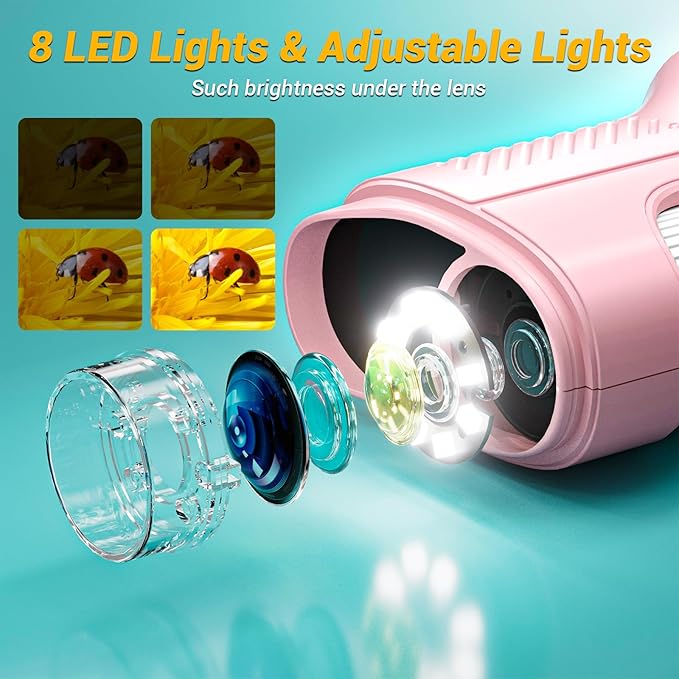 - 【Upgraded 2.4 Inch & 1080P HD Screen】Kids microscope features a 2.4-inch IPS screen, paired with 1980x1080P resolution and 2MP. Designed specifically for kids, it delivers bright, vivid views—even the tiniest details (like the fine lines on a leaf or the texture of a coin) remain sharp and clear, turning every observation into a delightful experience for curious little minds.