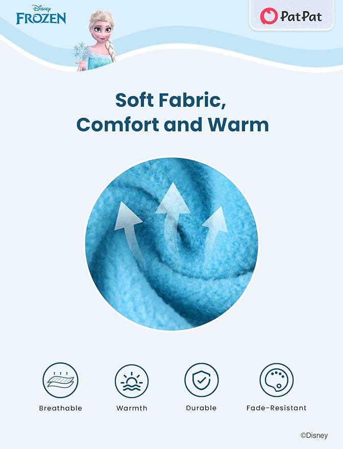 - Charming & Stylish Design: Keep your little one cozy and trendy with this Disney Elsa varsity jacket! Featuring an adorable Elsa patch, this light blue fleece jacket with white sleeves and striped cuffs offers both warmth and style. Perfect for kids aged 2-6, it’s ideal for school, outdoor play, or any Disney event, combining comfort with a fun, iconic design