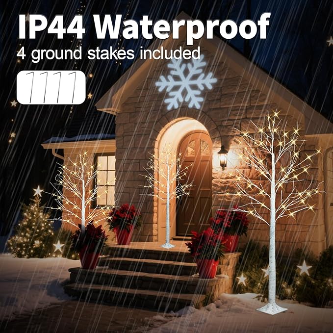 - Lighted Birch Tree:Includes four birch trees in 4FT, 6FT, and 8FT heights, each prelit with 64,120 and 264 warm white LED lights. Features realistic birch bark texture for a lifelike and elegant holiday display