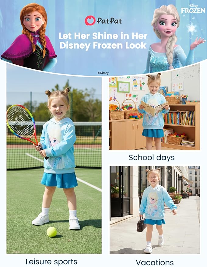 - Playful & Magical Design: Your little one will love Elsa's enchanting design, beautifully illustrated on a sky-blue background surrounded by snowflakes. Designed with a pull-on closure, ribbed sleeve cuffs, and a ribbed waistband, this Turquoise hoodie offers a perfect fit for all-day comfort and fun