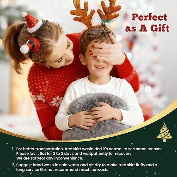 - 🎄Luxury Christmas Tree Skirt:High quality WOOL FUR tree skirt (12/15/24/30/36/48/60/72inch).Luxury THICK WOOL FUR tree skirt (30/36/48/60/72inch).Two different materials are available,Add a little warm to your season with an unexpected tree skirt.