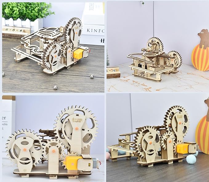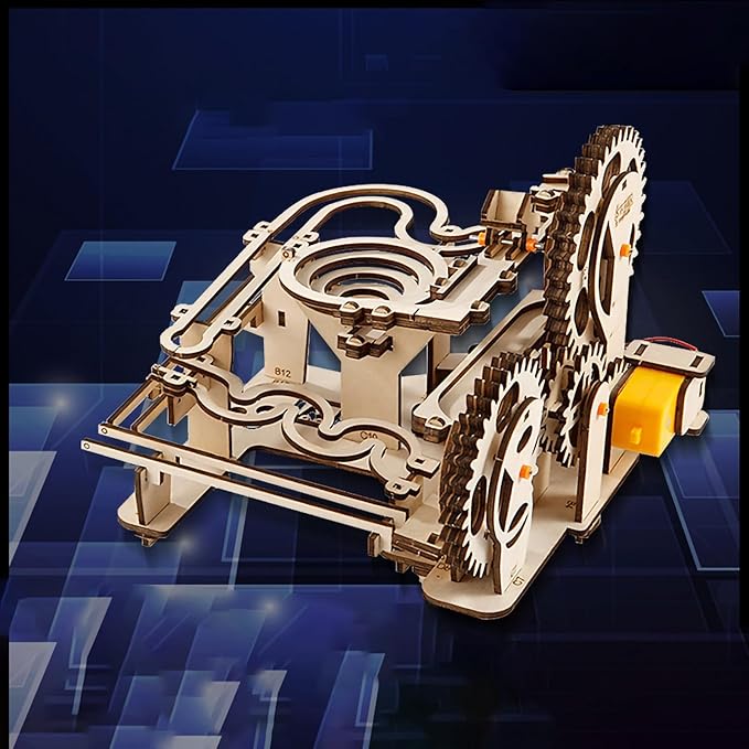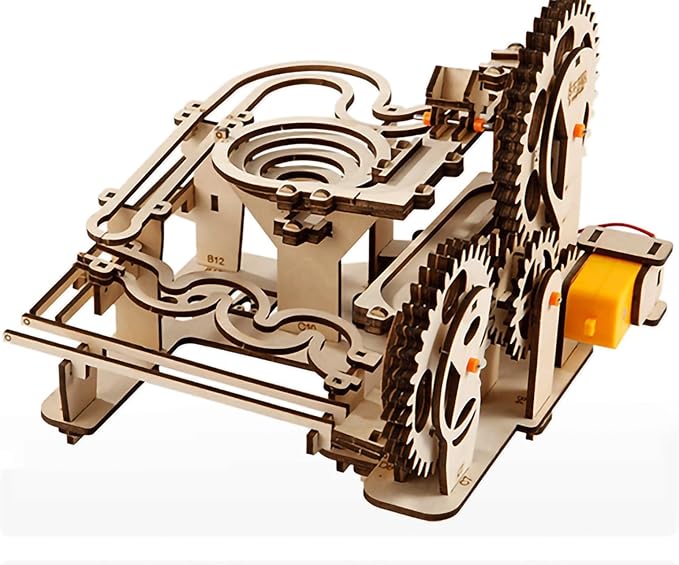 - This captivating model kit demands concentration and patience during assembly. Powered by gear trains, our marble run machine unveils the principles of physics. The Marble Run Chain Hoist mechanical model is not only a stunning kinetic sculpture but also an educational toy that entertains while it teaches
