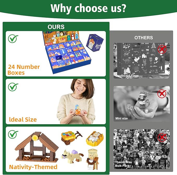 - 【Fun and Meaningful Christmas Activity】- Experience the Christmas story through our 2025 nativity advent calendar. Help kids and teens discover the wonder of Jesus’ birth in an engaging and interactive way! Each day builds anticipation and understanding while sparking imaginative play and learning. It’s the perfect blend of fun and faith—a joyful, educational experience that will make your 2025 holiday season extra special.