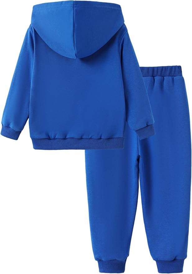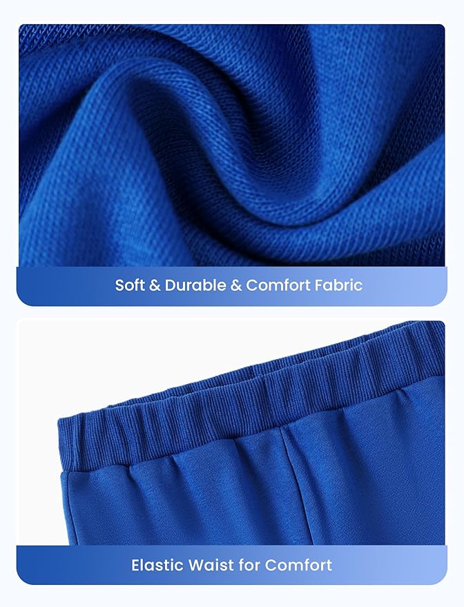 - Soft & Comfortable Fabric: Crafted from 95% polyester & 5% spandex, this boys sweat suits set offers all-day comfort. The fabric ensures your child stays cozy while being active, whether they're running around outside or relaxing at home. The stretchy material allows for ease of movement, while the cozy sets design is perfect for layering during fall or spring. Ribbed cuffs and hem provide a snug fit to keep the warmth in, making this tracksuit style set ideal for cool days.