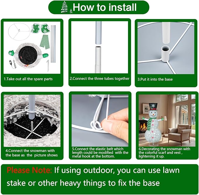 - Perfect Outdoor Christmas Decorations - Whether outdoor or indoor or yard, add an impressive glowing theme to your Christmas. Also suitable for Halloween, parties, stage performances and wedding decorations, etc, and comes with metal floor pegs to prevent the snowman from being blown over by the wind.