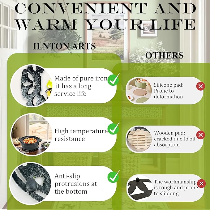 - 🛡️ 【Built to Last for Seasons】Crafted from high-quality cast iron, this trivet set won't warp, crack, or fade. It's a timeless kitchen companion that will bring Christmas cheer for years to come.