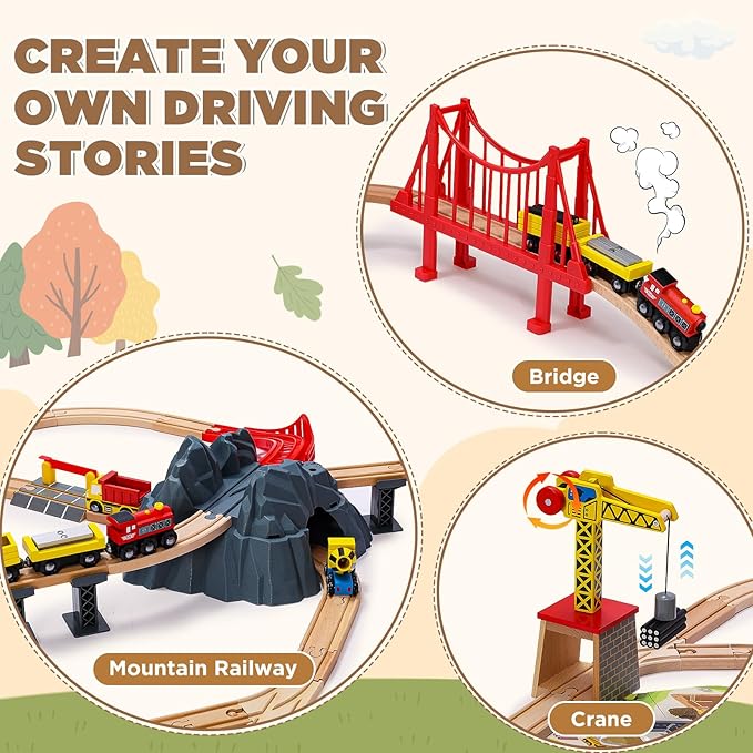 - Fully Compatible with Major Brands: Designed to seamlessly connect and expand with other popular wooden railway systems, allowing your child to integrate this construction zone into their existing train empire