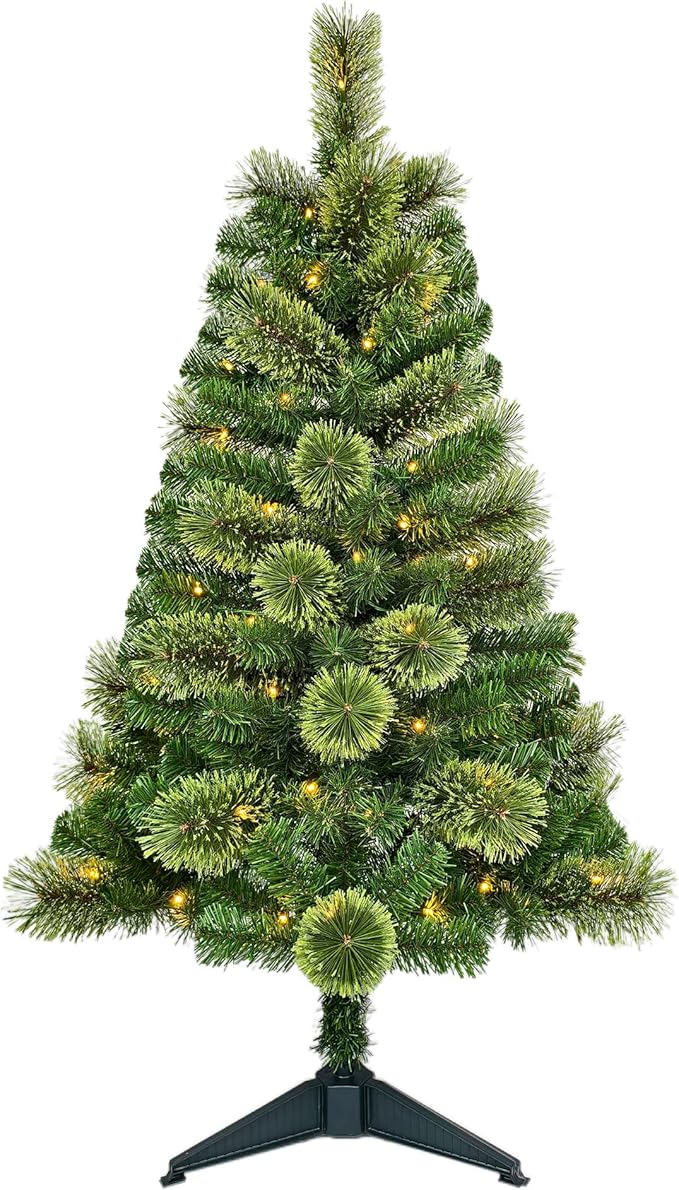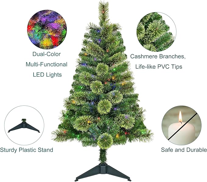 4FT Pre-Lit Artificial Christmas Tree with 70 LED Lights, 4 Light Modes, 189 Tips, PVC Cashmere Branches, Plastic Stand, Indoor Use