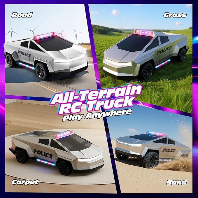 - Great Gift Choice for Kids: With its realistic police lights, durable design, and extended playtime, this remote control truck is a fun and exciting gift for boys and girls ages 3 and up. Perfect for birthdays, Christmas, holidays, or special occasions, it encourages active play, sparks imagination, and provides hours of entertainment.